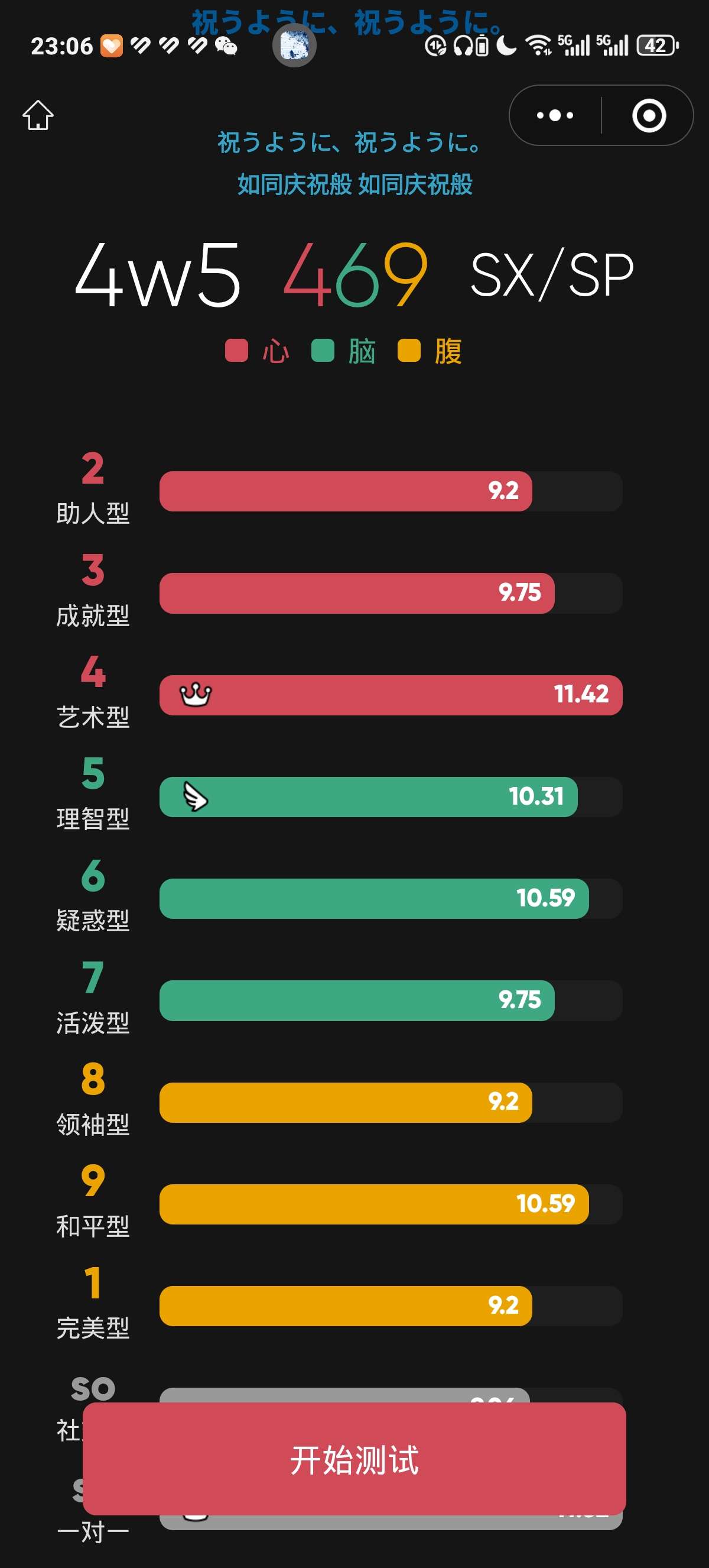 vx小程序搜“广州黑箱网络科技有限公司”,可以看到有mbti测试模块,点进去有测九型的