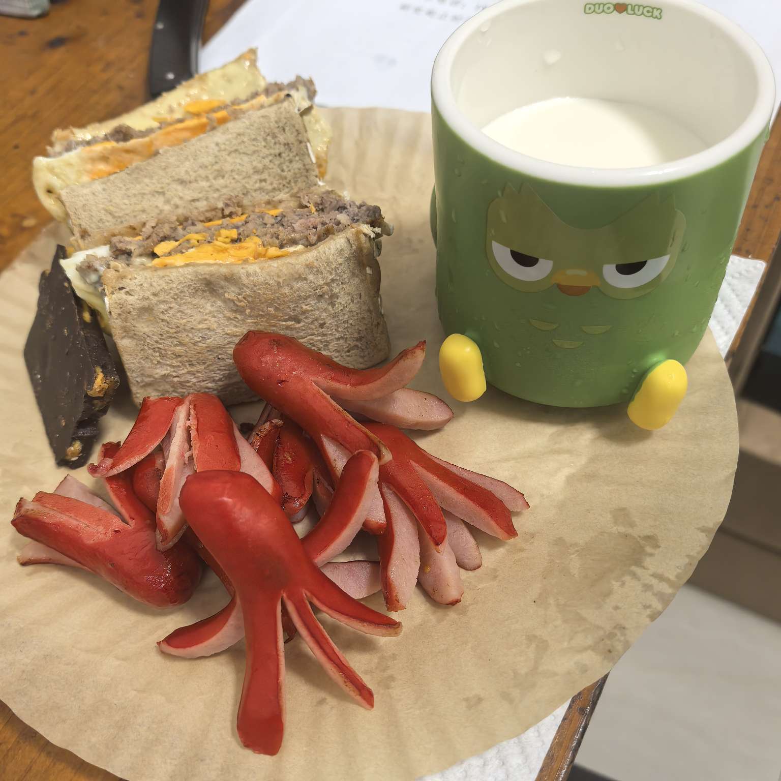 生存记录。//依旧是平平无奇的一餐。//敬丰盛的一餐,温暖的床,和命不该绝。//妈妈说睡前要喝牛奶,所以我一般晚上喝酒。酒醒了再喝牛奶,这就是双十一冰箱里有5L奶的理由吗?哭鲁西,头痛捏。