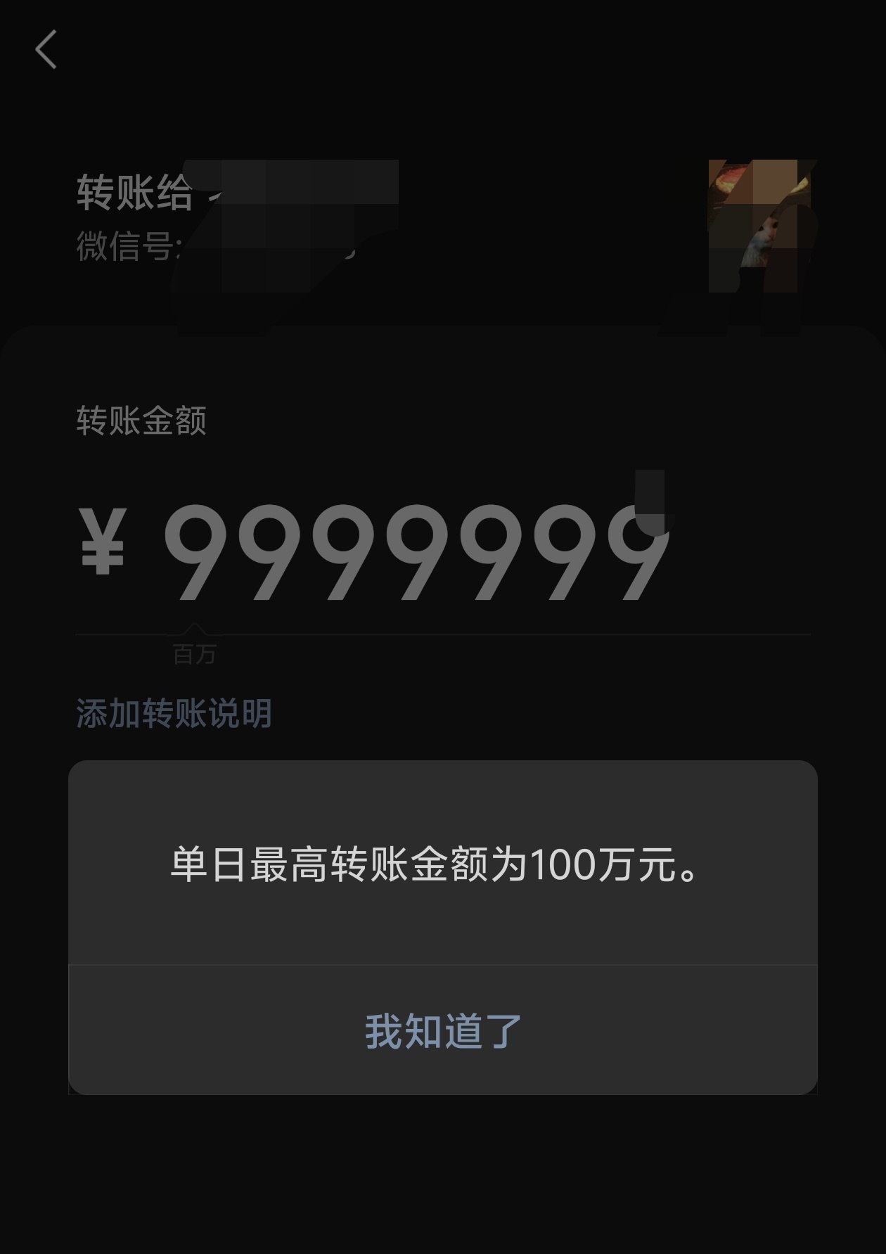 以防大家不知道,wx单日最高转账100w元
