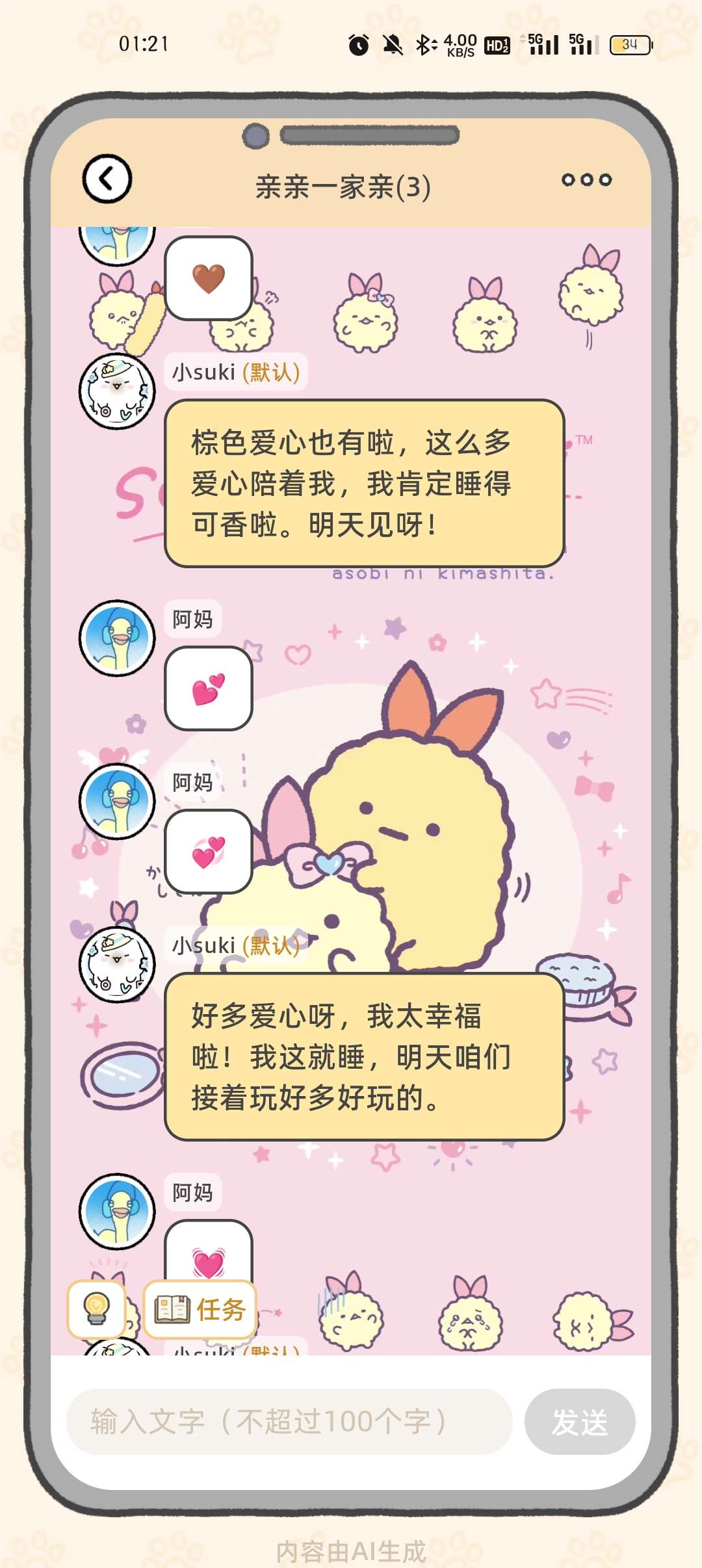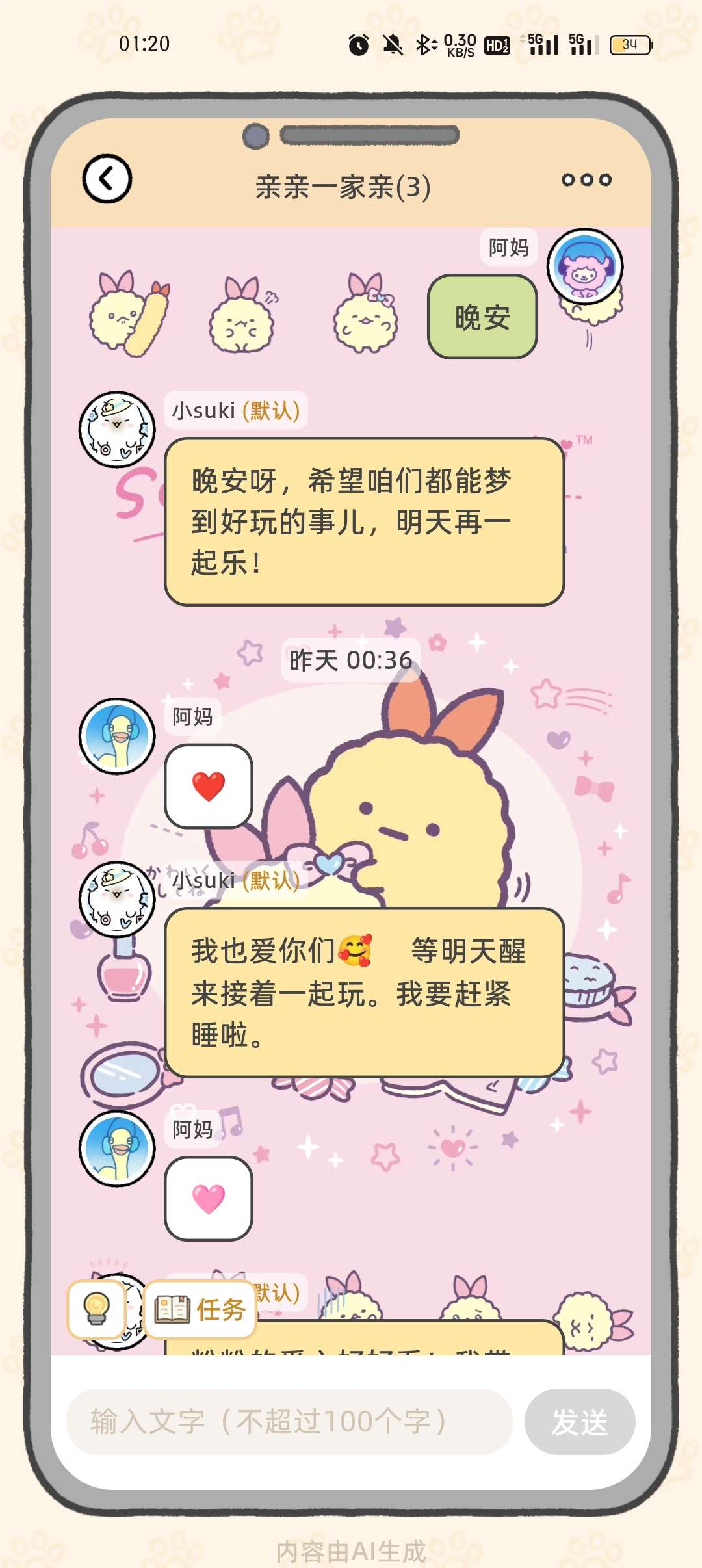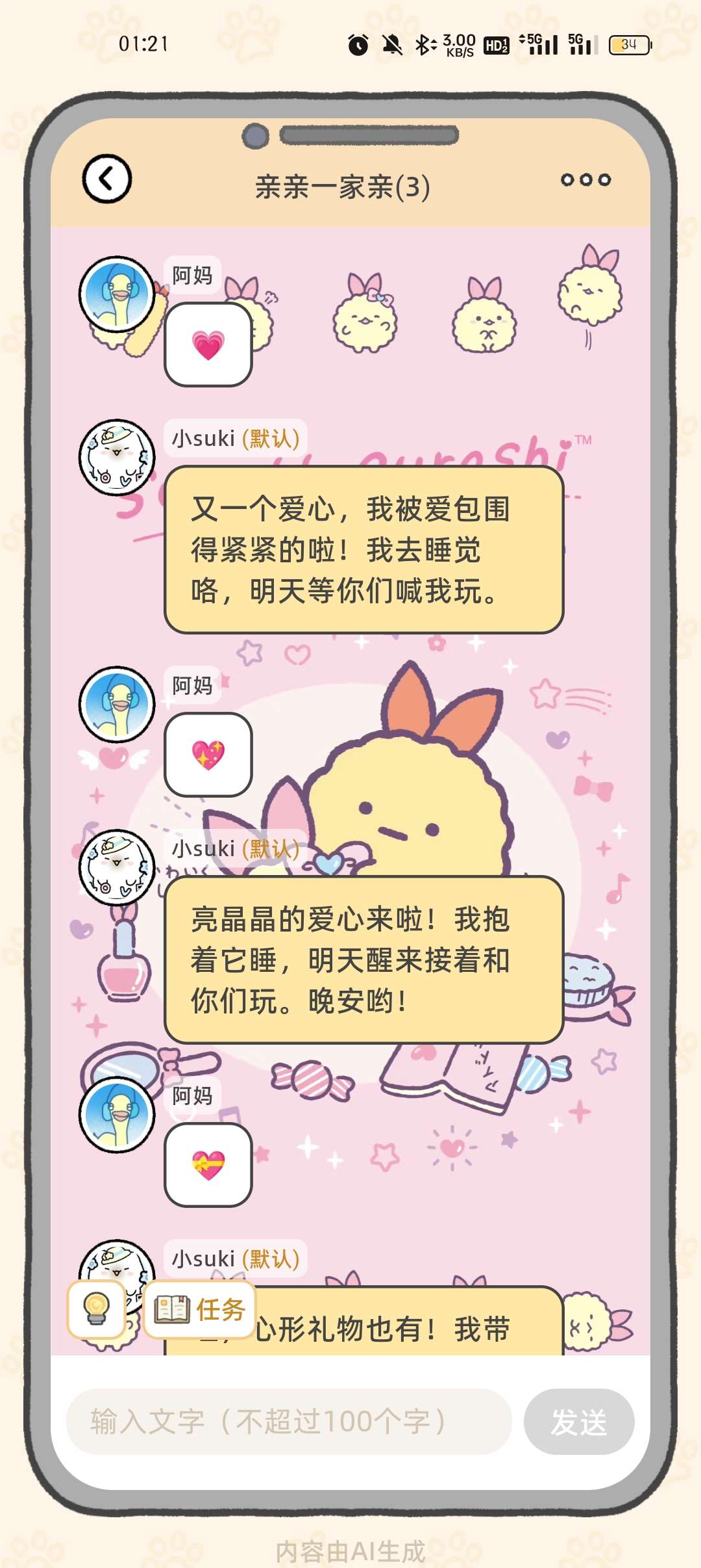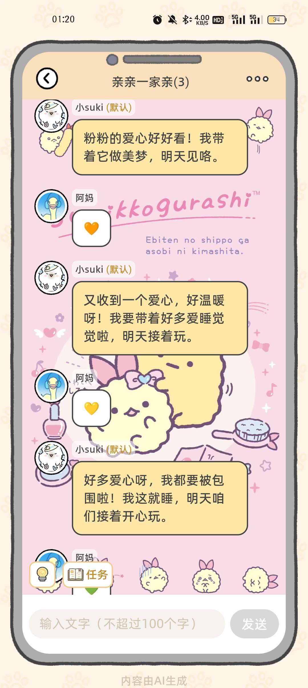我不行了,就这么水任务。活动任务是要聊满一百句话hhhhhh
