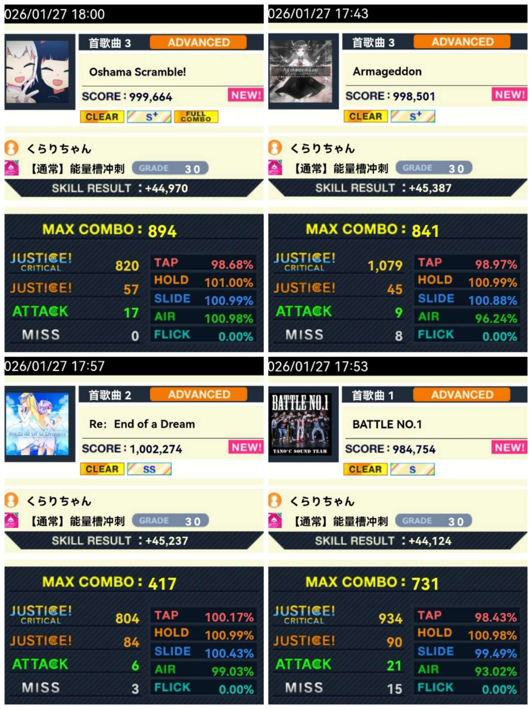 昨天第二次(太好玩了所以一下子打了12首)和前天第一次打中二节奏的战绩图。第一次接触街机音游打得很菜,好不习惯中二的判定,感觉哪里怪怪的……Orz