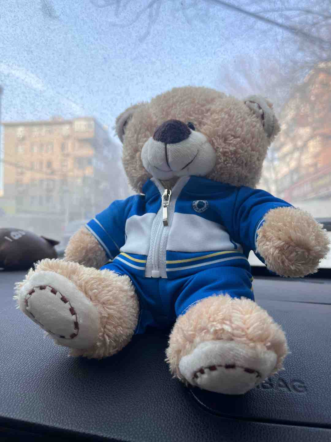 今天去学校排练,排练结束以后音乐老师送了我一只校服熊。这原本是优秀毕业生、班级第一或者执勤组长的奖品,老师说做活动剩下了好几只就送我了。上上学期我终于考到班级第一的时候学校没发校服熊,学校也没选我当执勤组长,当时很难受。错失了这么多机会以后,没想到突然在今天机缘巧合的得到了它。我之前是对校服熊所代表的荣耀挺执着的,现在没什么感受了TT。我就当是给以前那个考到班级第一的我的奖励吧!