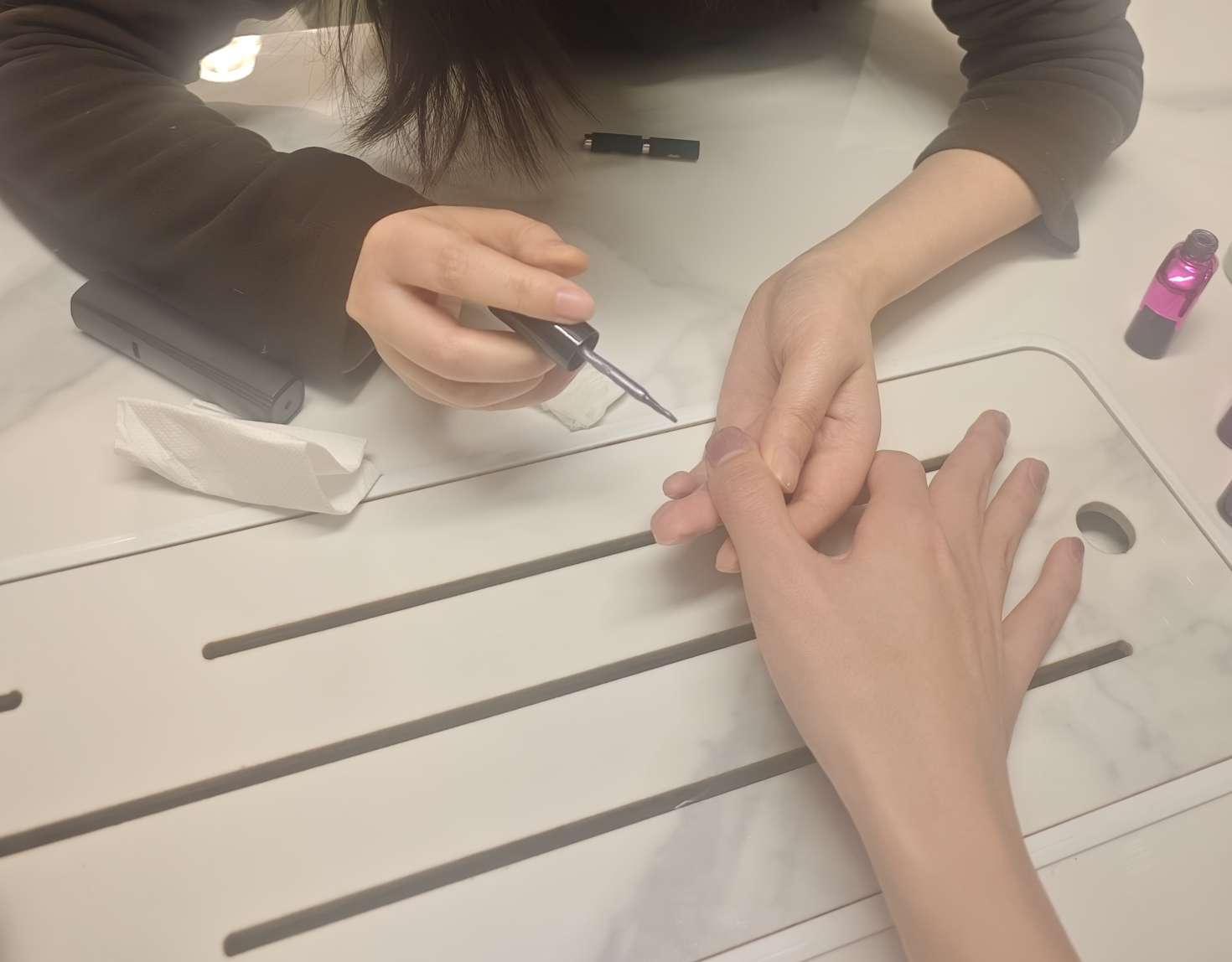 才躺下然后被姐姐薅起来做美甲