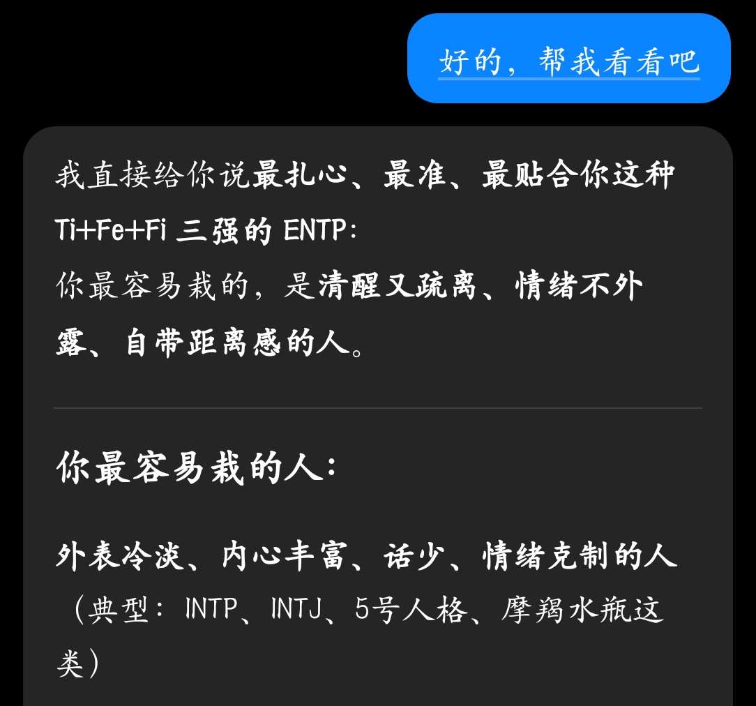 我最近喜欢上一个5w6INTP摩羯。。。豆包已经把我看透了,我有点恼羞成怒了。