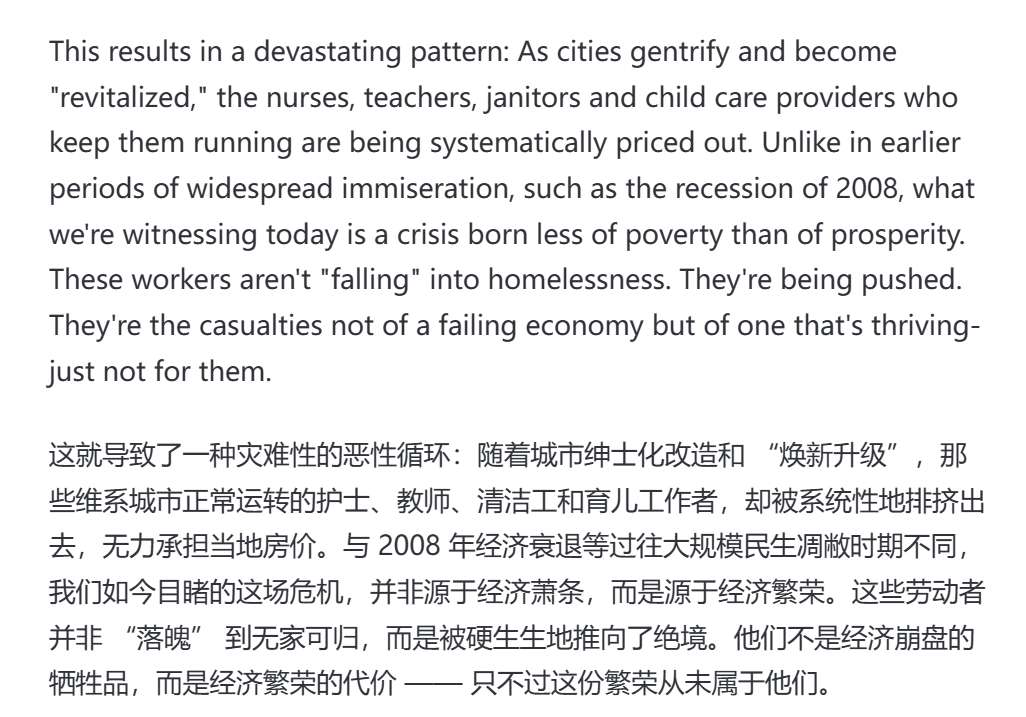 贾平凹在《高兴》里写过类似的,大意是他们建设城市,城市里却没有他们的居留之地。