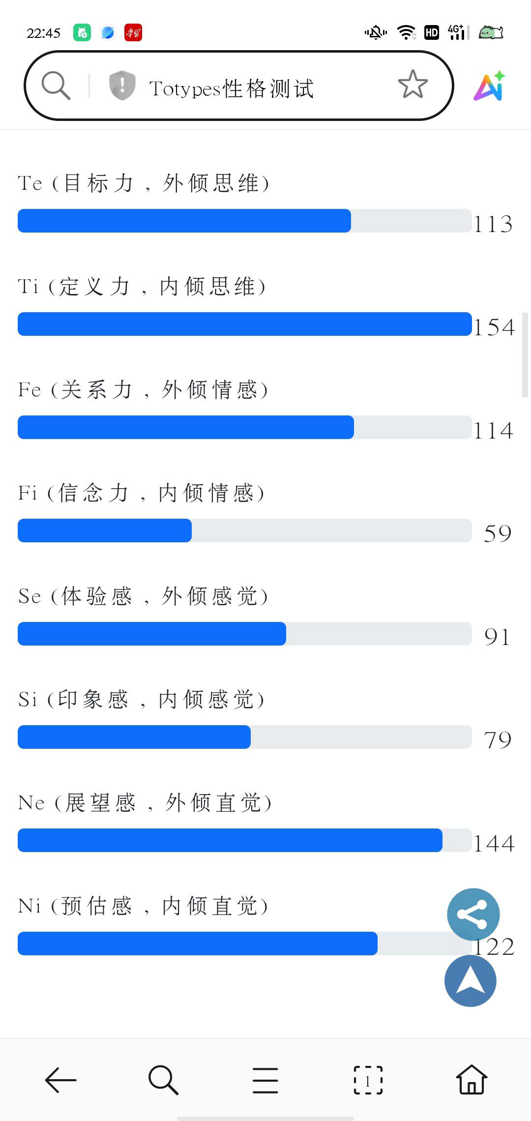ti知道分享自己是危险的事ne和fe却一直在渴望新的反馈和评价fi和ni又用不顺,te,se也跃跃欲试于是ti当辅助了于是我的八维越来越平均,九型的7和8特质也越来越显现试图驯服fi中,内倾功能是连锁的,ti高的很多也都fi高fe低但显然我这是外倾连锁了