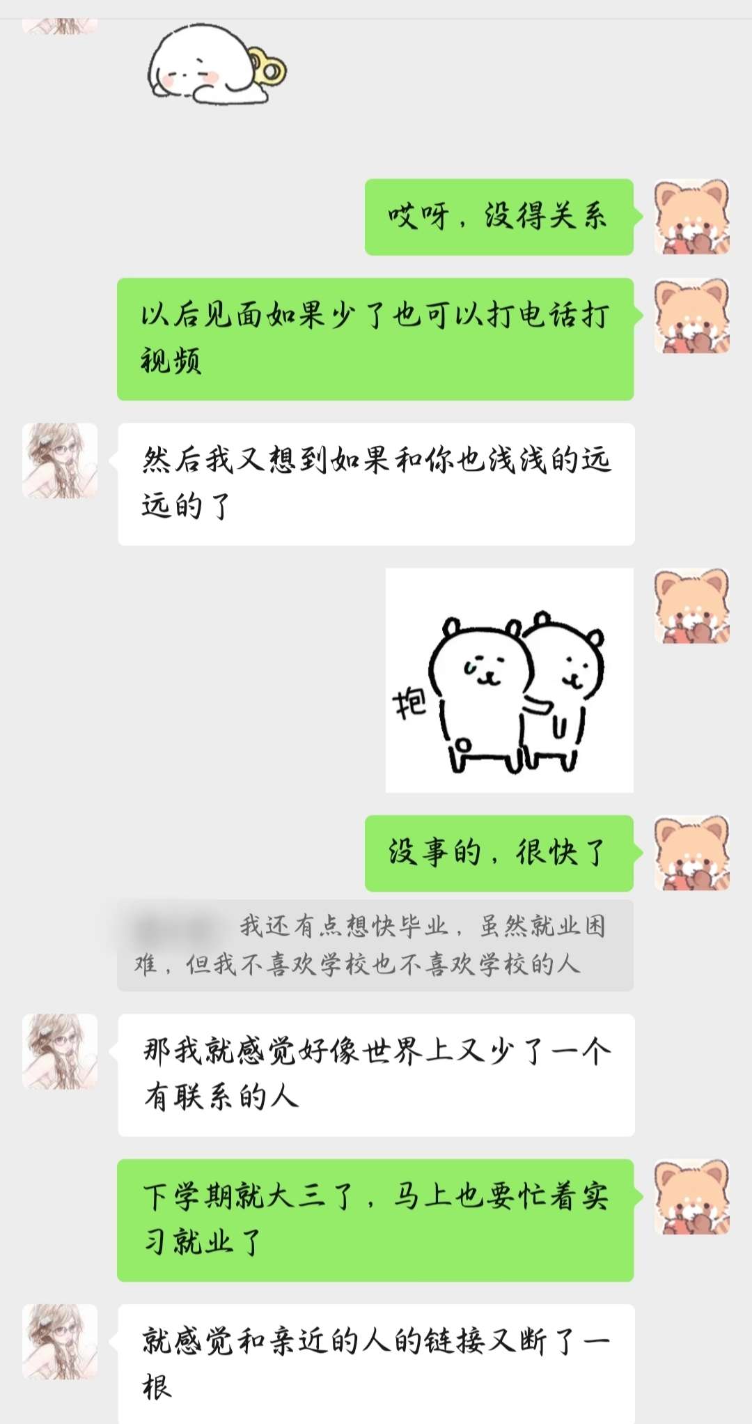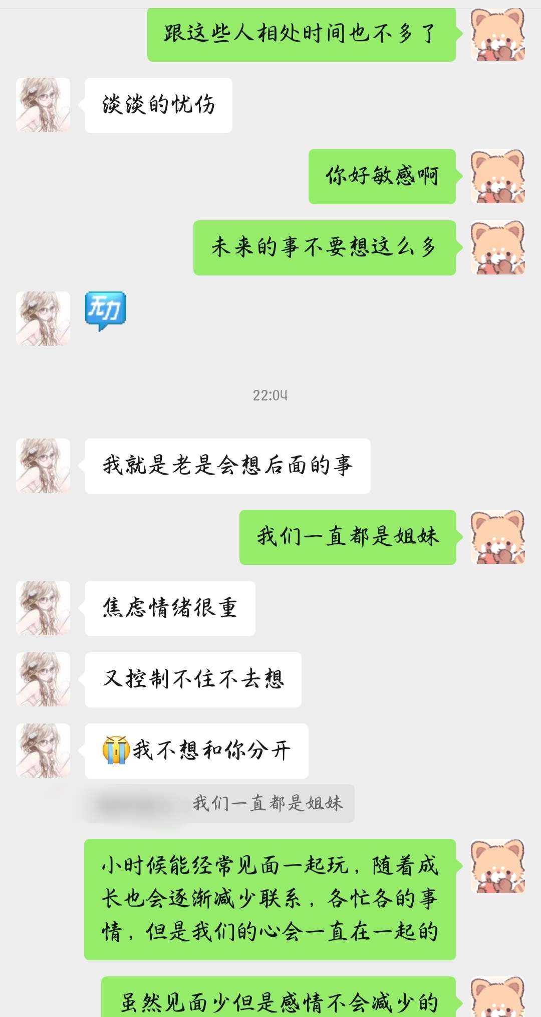 哎,好伤感的妹,内心很细腻的小女孩。我感觉我的心好硬,安慰人的能力也好弱。