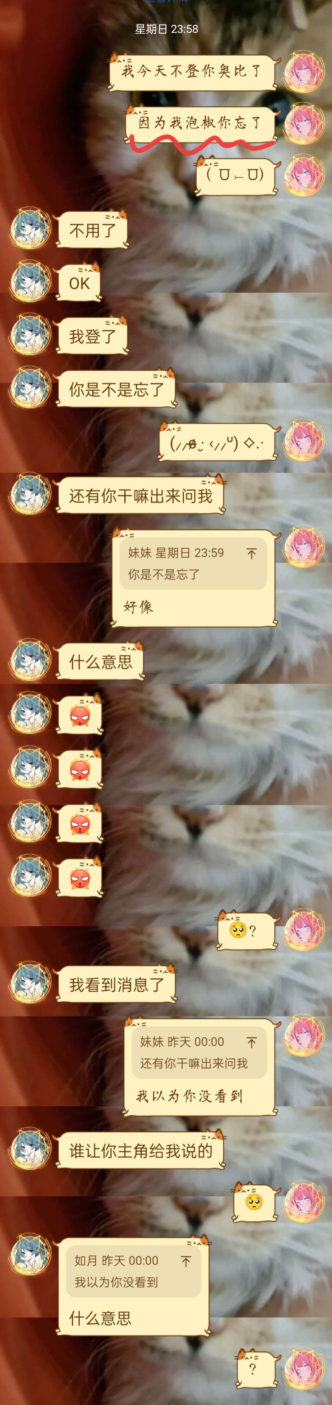 今天中午吃完饭后老妹质问我昨天的事,在那里说要赔偿她周末一起去楼下买吃的,但是我不想说什么,就在那里答非所问,老妹就生气了,就打了我几下,也要上课了,我们就回教室了,然后下午吃完饭我去找老妹老妹为什么还生气,在生什么气,中途我说我有80%的事情可以用感情解决问题(就是老妹态度温柔一点,耐心的给我说话,不要一直命令我干这干那,虽然是正确的,但是我就很难受)我就在想是不是像昨天那样不跟她一起下楼买吃的,所以老妹上午才说赔偿她,结果问了之后是因为我的脾气,每天几乎都会在不想干之后加一个费话理由,昨天因为我不理老妹,她生气把我在玩她手机拿走了,她还有一个我们一起用的手机,中间还有些时让我伤心了,我就去找她要我就一直说手机,手机,手机,结果她更气了,我感觉老妹对我态度不好,语气也很冲,我就一直不做什么大反应,就一个劲点她肩膀,她就生气的打我,过了一会老妹就回房间,我不知道她要锁门,我就在门口,结果老妹锁了门,我就在那里哭,乱哭,敲了很久的门,说了很多想拿手机的话,因为上次也是关了门,我没理她,她就如果我理她,她就会心情好了给我手机。就是这样了。